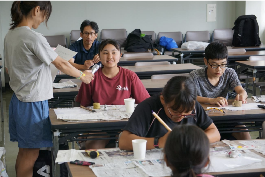 ・工作では、陶芸作品を作りました。自分の好きな形や模様を作りました。創造力が発揮されました。